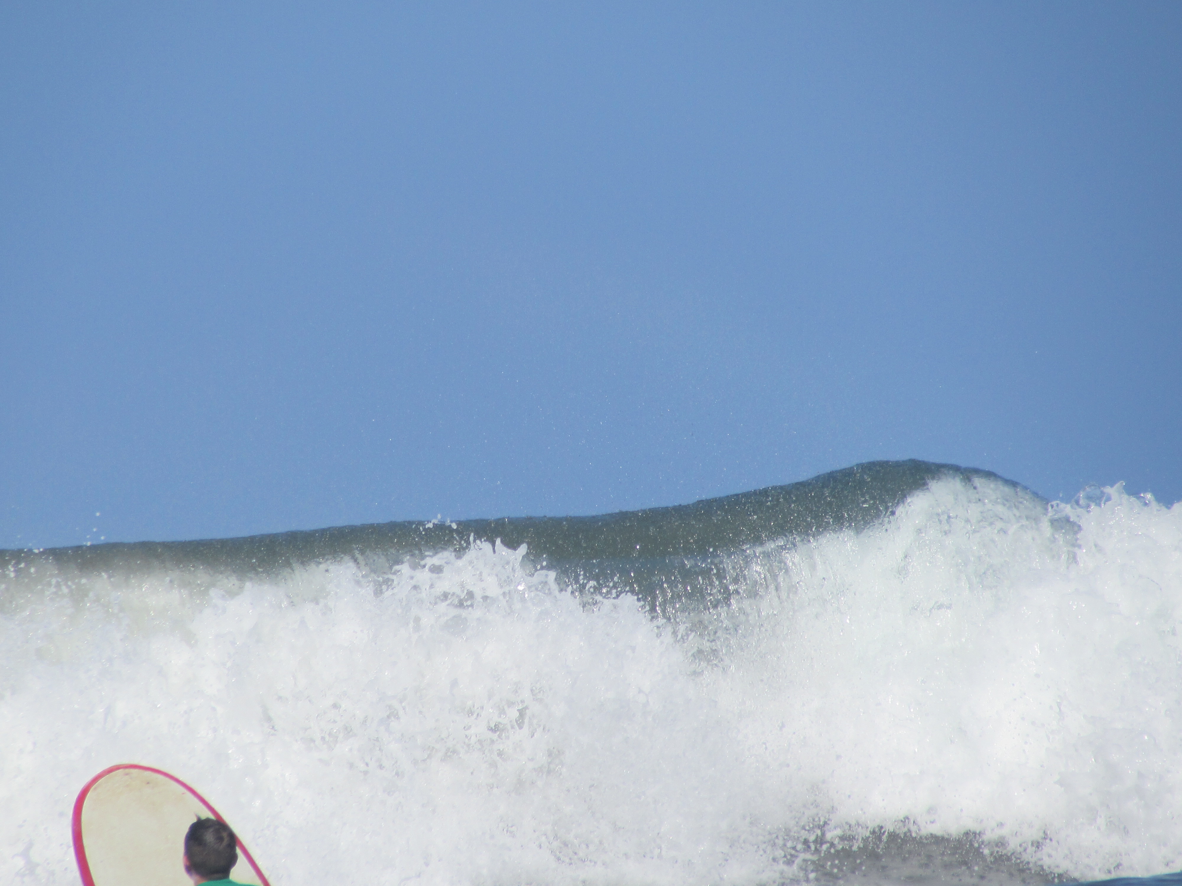 The beach at Guiones was unlike any beach I’ve been to in that the difference between high tide and low tide was at least 75 yards. When we arrived there Sunday morning it was low tide so when we set up on the beach the waves were a significant distance away. From our perch at the top of the beach, the waves at Guiones looked pretty reasonable. Like this: